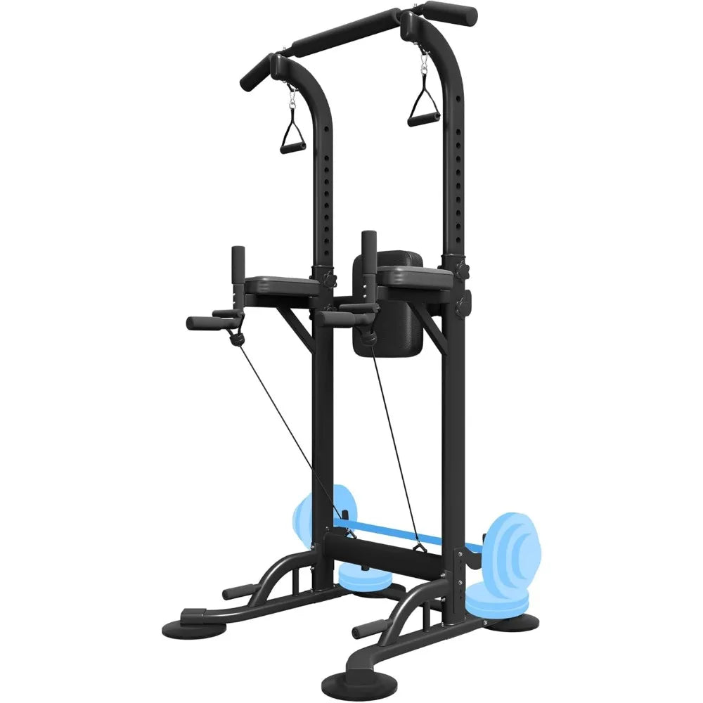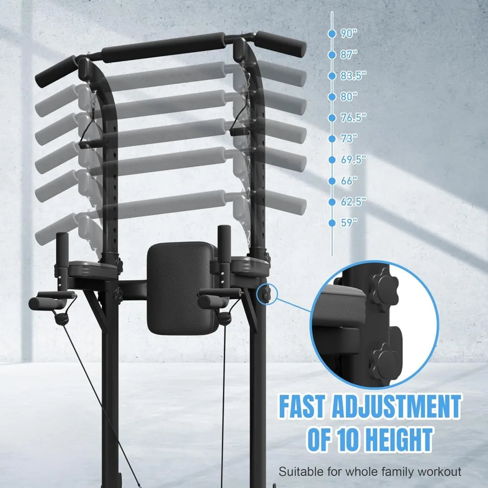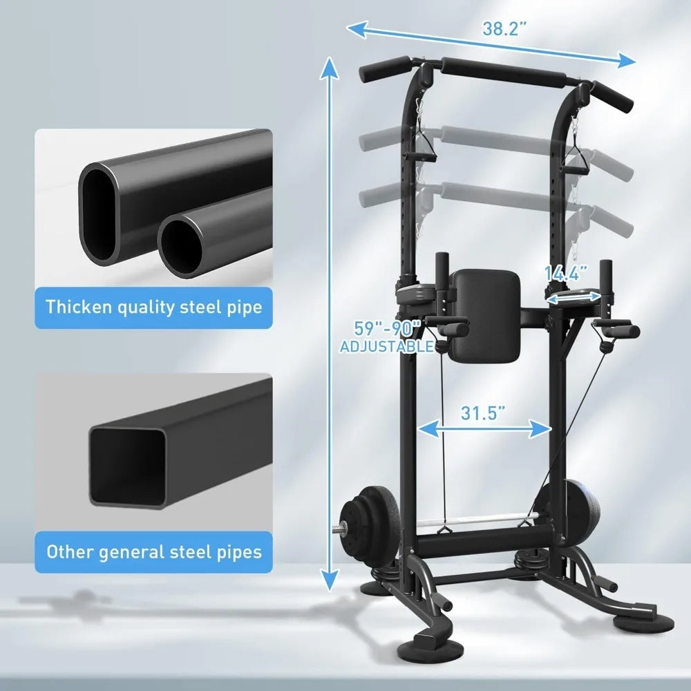 Power Tower with Backrest, Adjustable Height Pull Up Bar Stand, Multifunctional Strength Training Fitness Workout Station
